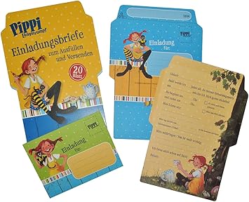 Set Di Biglietti D Invito Per Festa Di Compleanno Motivi Ispirati A Pippi Calzelunghe 20 Pezzi In Lingua Straniera Amazon It Giochi E Giocattoli